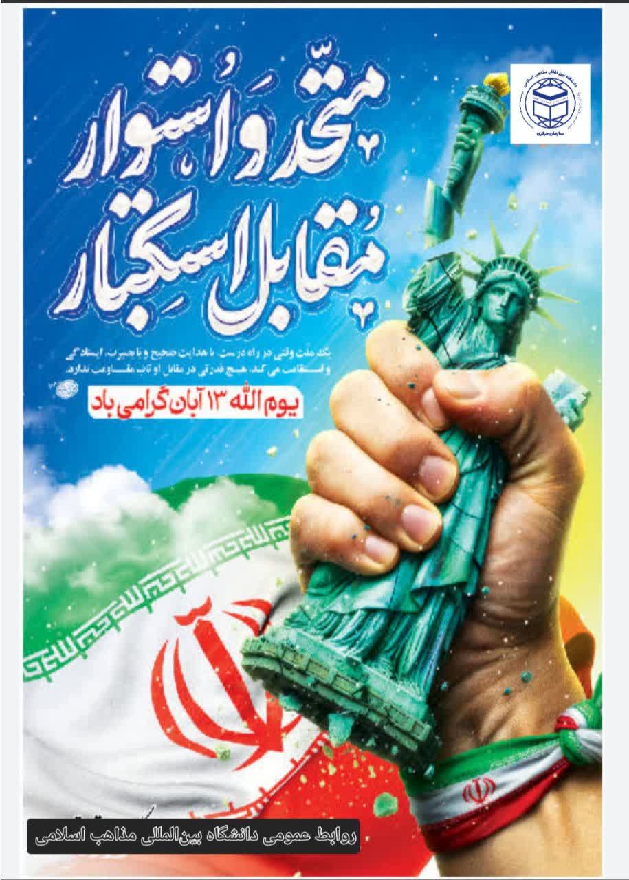 سیزدهم آبان، روز ملی مبارزه با استکبار جهانی، یادآور حماسه‌ای ماندگار از غیرت، بصیرت و شجاعت ملت بزرگ ایران است؛ روزی که دانش‌آموزان و دانشجویان انقلابی، با الهام از مکتب امام خمینی (ره) و در پرتو ایمان و اراده، طومار هیمنه پوشالی استکبار جهانی را در هم پیچیدند و به جهانیان آموختند که صدای حق‌طلبی و آزادی، هرگز خاموش نخواهد شد.